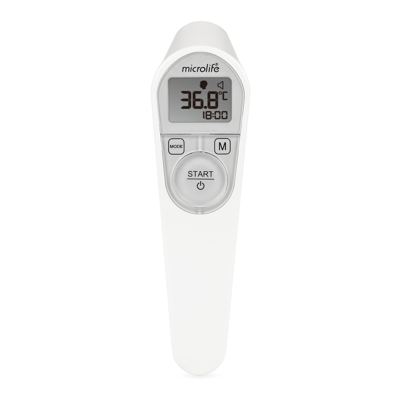 The Microlife NC 200 enables precise measurement of body temperature without touching the patient. Temperature is automatically taken when the device detects that it is within a distance of 1–5 cm from a person’s forehead. The positioning aid indicates the right distance for correct measurement as well as the end of the measuring process.